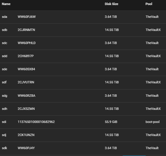 Arwen MVP Joined May 17, 2014 Messages 3,611 Nov 5, 2023 #3 It would appear their is a bug in the GUI. Adding the disks will likely corrupt an existing pool, as well as the pool added to.