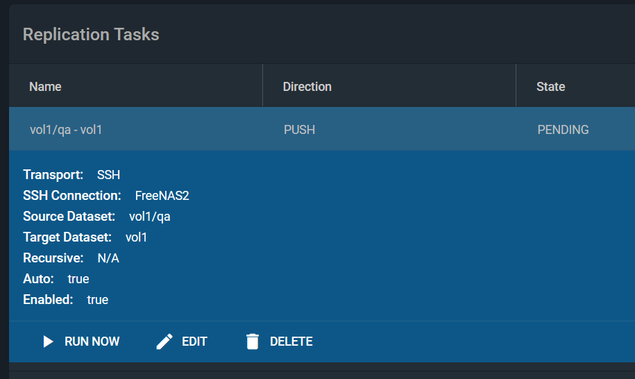 [2020/06/15 09:00:15] INFO [replication_task__task_6] [zettarepl.replication.run] For replication task 'task_6': doing push from 'vol1/qa' to 'vol1' of snapshot='auto-2020-06-14_00-00' incremental_base=None receive_resume_token=None