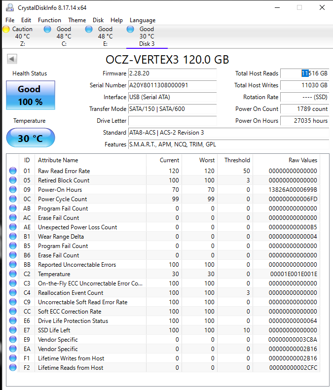 I decided to pull the existing drive Here is it's smart data: