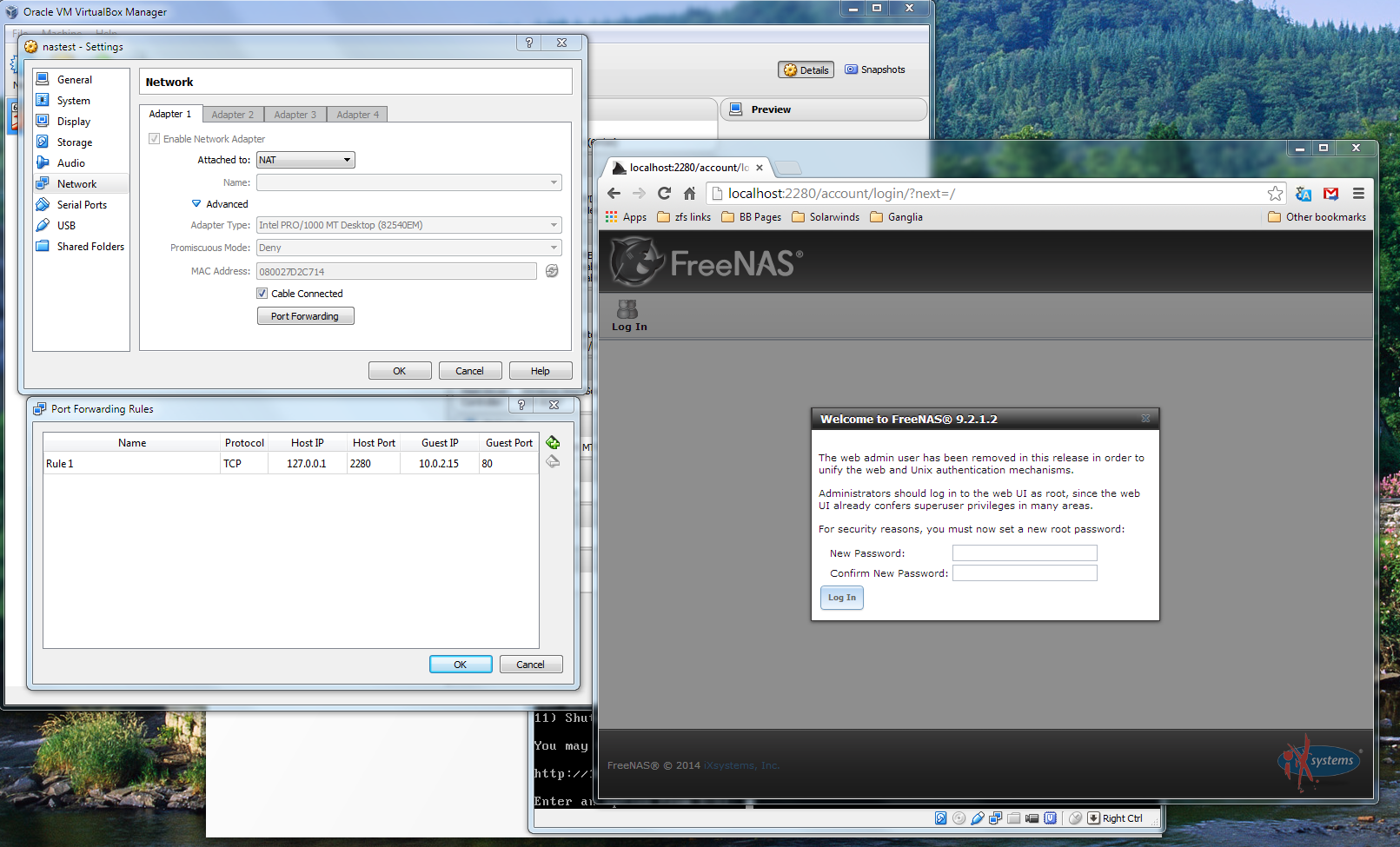 I recently learned about FreeNAS, so I was curious to see if I could get it running on VirtualBox to have a play around with it. I downloaded the 9.2.1.5 64-bit .ISO image and followed these two guides in the documentation to get it installed on my machine. However, during and after start-up I come across seemingly-unrelated errors which have left me stuck.