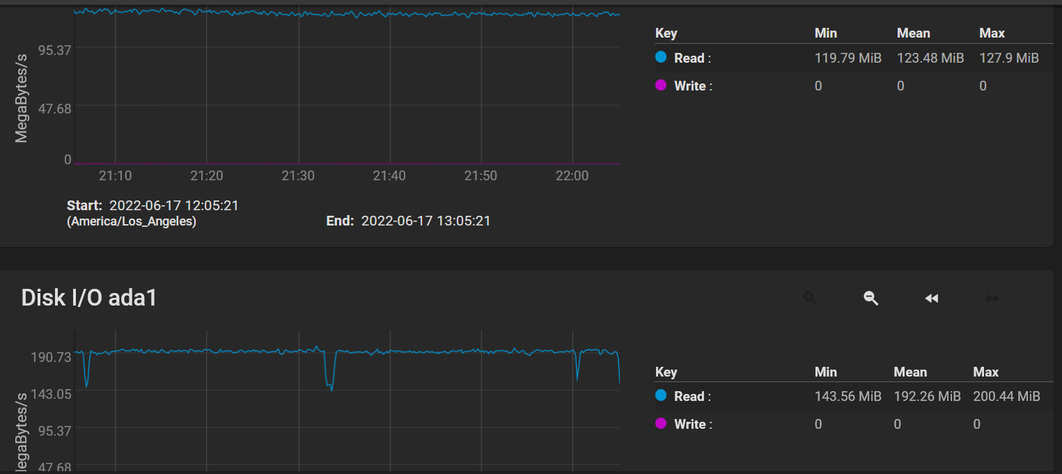 When I performed my 18TB burning test, I was monitoring the progress using the NetData plugin.