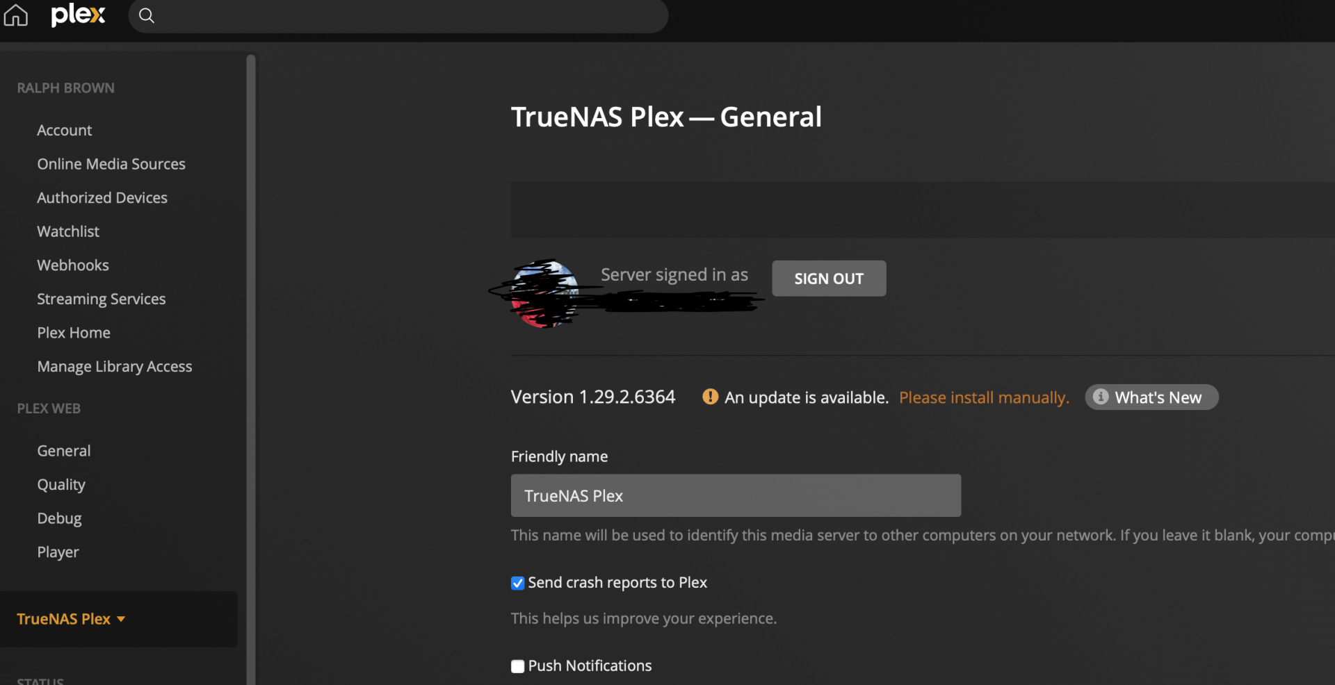 I am running Trueness Scale on a PC server and want to update the Plex media Server (see screenshot). The Plex Server - Settings - General - page shows an update due. I download the update (.deb package), but am unsure how to make the "manual update." Plex says "Please install manually." but I do not see any instructions. I checked the Trueness Scale documentation, but do not see any reference to Plex updates.