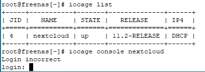 I SSH into the FreeNAS server, and then try to run iocage console to enter the jail.