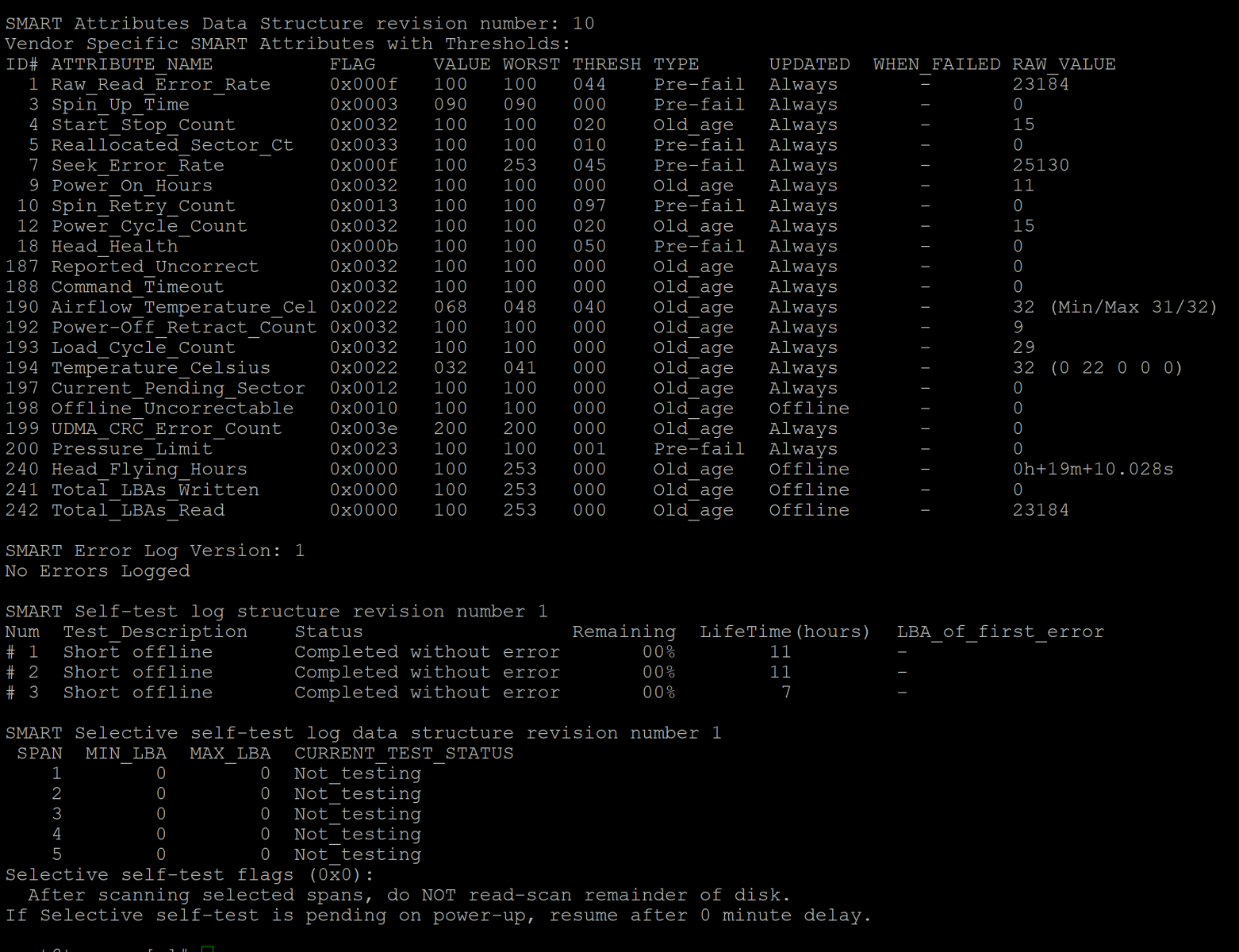 smartctl -t short /dev/sdg