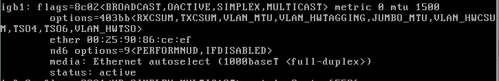 My file server vanished from the LAN, and when I reboot and watch the console (via IPMI) it says that no network interface is configured. I choose 1 from the menu, and the desired interface device igb1, and it asks me to confirm "reset". That's all it does: no choice of manual configuration or viewing of the information.