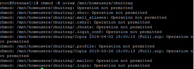 I do not know what else to explain, my freenas was working well, I left all the user directories with permissions for the owner, now, as the image shows the other permissions, for the group and others, and can not be removed , and it happened after applying the last update