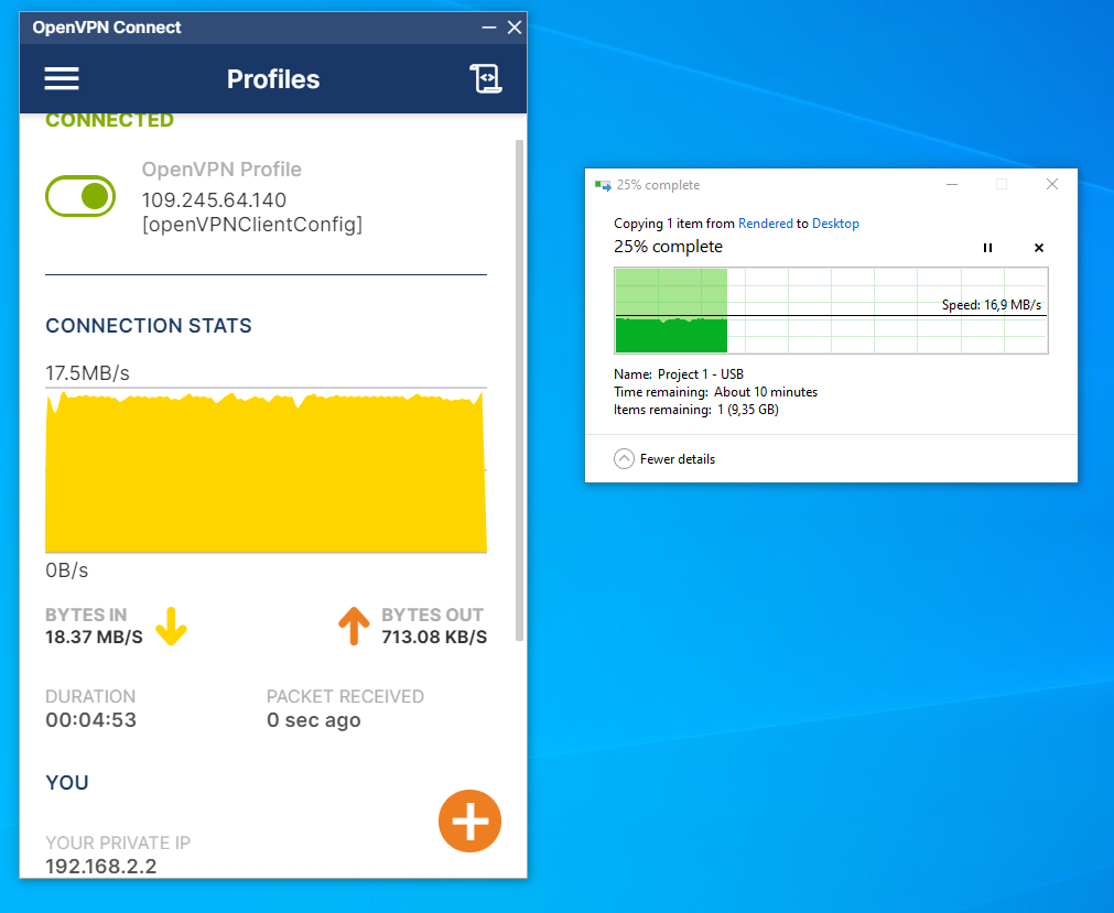 Using a Windows 11 laptop's OpenVPN client program, speed doesn't go faster than 15-20 megabytes per second.