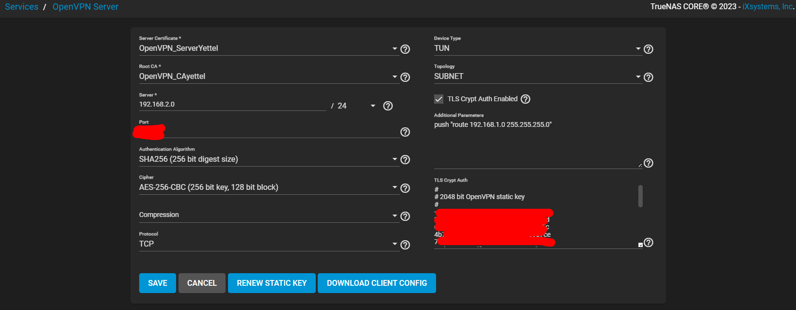TrueNAS is the provider of my OpenVPN service, and a self-signed certification authority, using which i've generated server's, and the clients (users) certificates respectively.