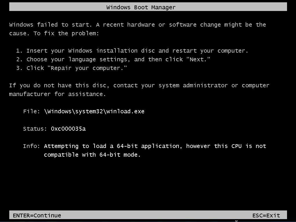 Problem with Windows 64 bits on VM