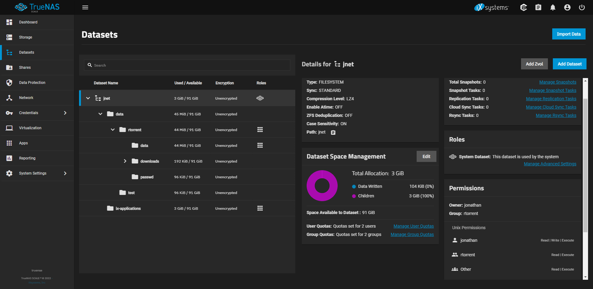 And I have installed Truenas Scale on VM to do testing before I migrate it to a server pc, I normaly use qnap nas, with resillo sync, my problem is that I cant see datasets from resillo sync, I have created an group and user for it, and set the datasets for that user/group as showing on image below, hope any one can help me with this problem :)