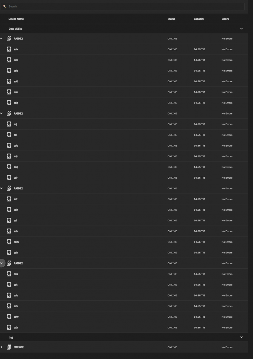 After adding a 4th 6 disk raidz2 to my 3 existing identical 6 disk raidz2 vdevs truenas is reporting they're mixed capacity.