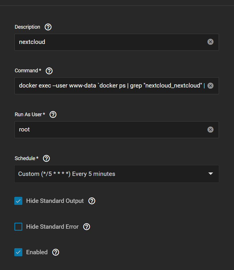 Setup cronjob for nextcloudEnable cronjobs for nextcloud [enabled]
