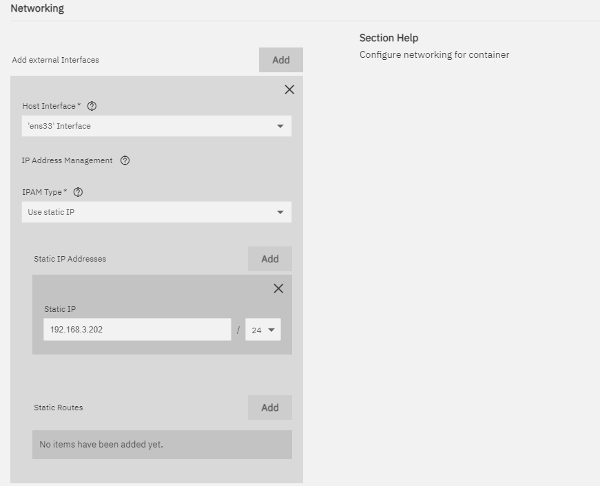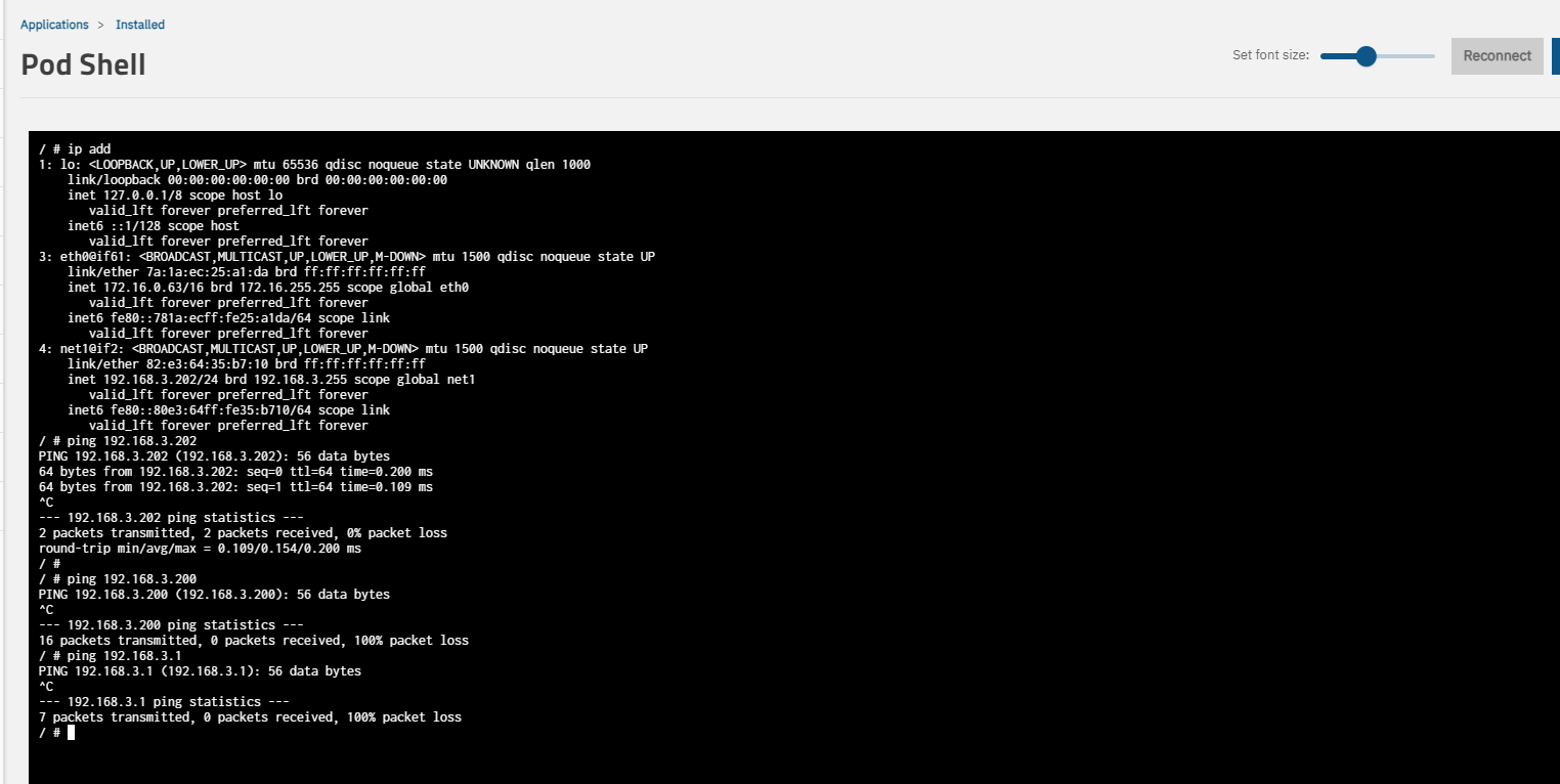 I have three apps. I want each app to have a specified IP that is the same as the host network. But when I set Add external Interfaces and add a static IP, I can see that the IP setting is successful when I enter the app cmd, but the test cannot Access the host ip, and the set app ip cannot be accessed from the outside.