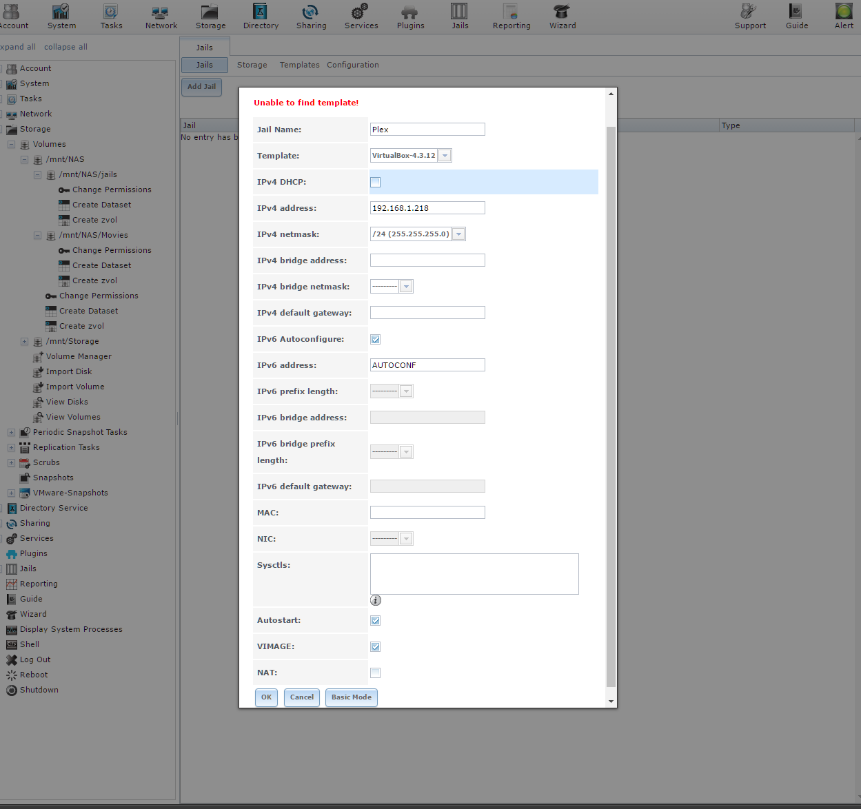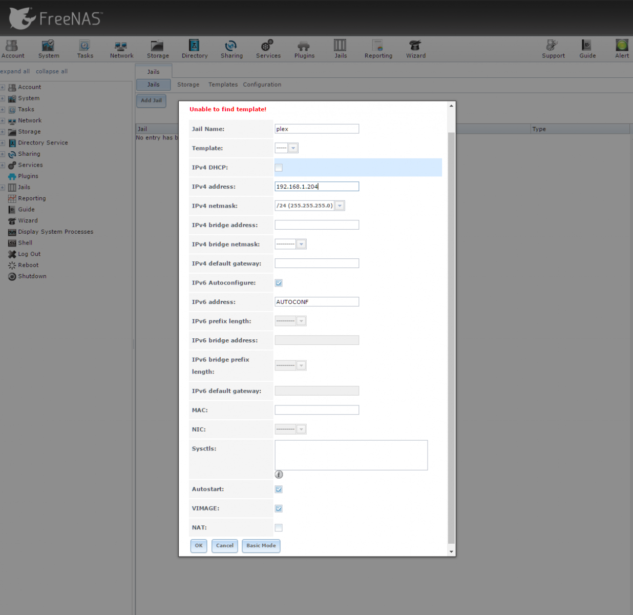 I am fairly new to Freenas. I initially built my system to use with Plex, and it had been working great, but then I started having network issues. I thought I would just delete the plugin for plex along with the jail, and create them fresh, but now I am unable to Add Jails, and Plugins show up empty.