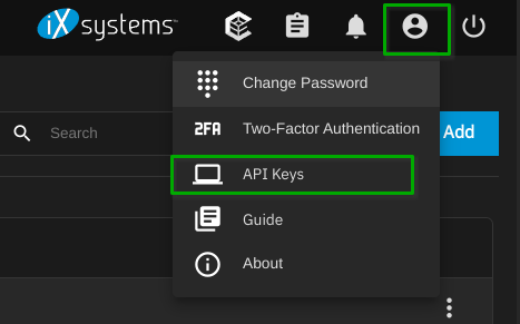 From the TrueNAS UI - In the toolbar top right, go to settings -> API key