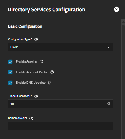 Go to Credentials > Directory Services and click Configure Directory Services to open the Directory Services Configuration form.