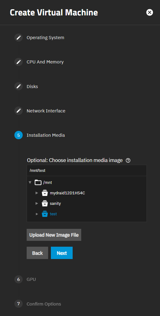 iso , click Upload New Image File. Enter the path or browse to select the location of the file.Click Upload to begin the upload process. After the upload finishes, click Next.