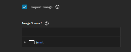 When you select Import Image, browse to and select the source disk image file in Image Source. The system automatically detects the image format (QCOW2, QED, RAW, VDI, VHDX, or VMDK). Select the destination dataset in Zvol Location where the system creates the converted zvol.