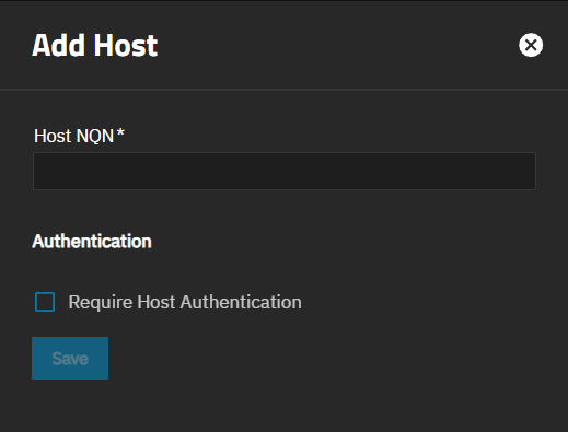 - Allow all hosts that removes the host from the subsystem but does not delete it. It toggles the Add dropdown list to show the available host NQN hidden by selecting Allow all hosts and removes Allow all hosts from the dropdown list.