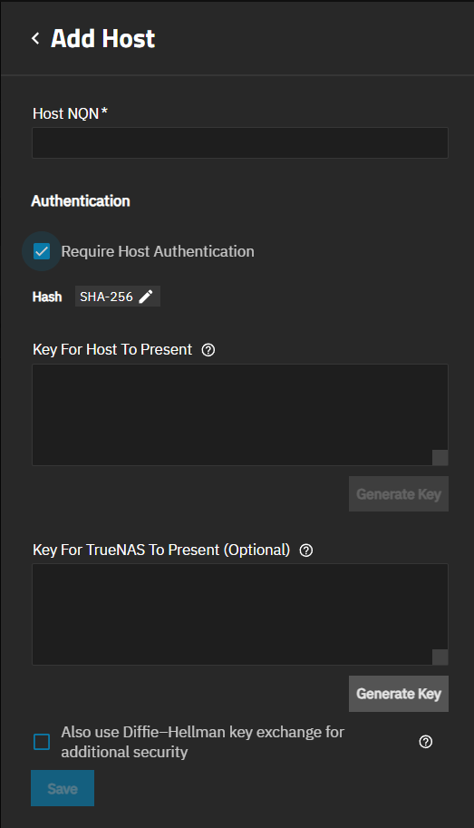 Require Host Authentication shows the additional setting options.