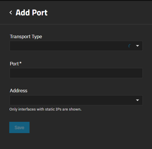 Add New opens the Add Port screen.
