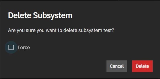 Force forces the delete operation if the subsystem has a port or host assicated with it.