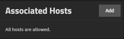 Allow any host to connect is selected by default. When selected, it allows connections to any host. When not selected, it shows the Allow Hosts option and Add button that opens the Add Host screen.