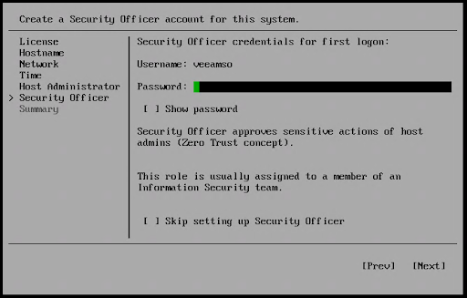 Set the default veeamadmin password. This password must meet DISA STIG guidelines for passwords.