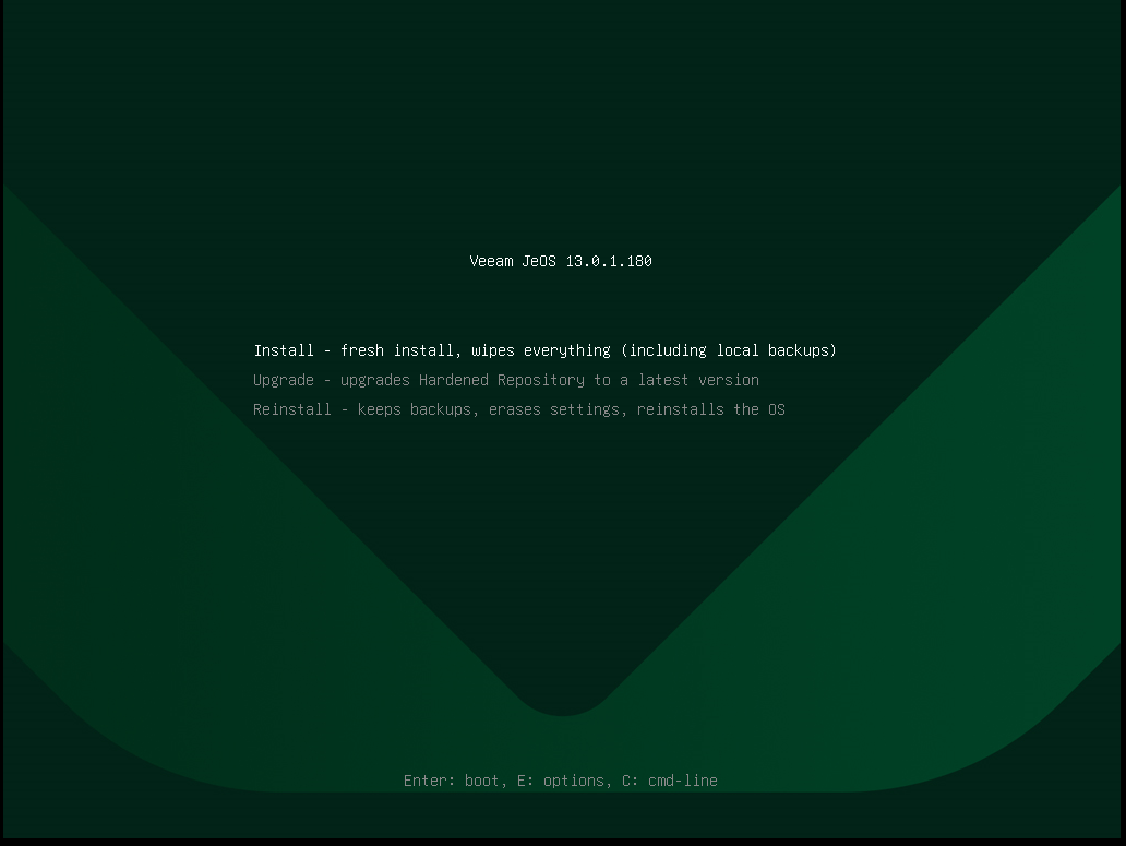 On the Veeam Infrastructure Appliance splash screen, select Veeam Hardened Repository.